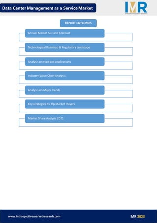 The global Data Center Management as a Service (DMAAS) market is projected to grow significantly between 2022 and 2028, with a detailed analysis of the market size, trends, and forecasts provided in the 2023 report by Introspective Market Research. DMAAS utilizes DCIM software to enhance data collection from multiple data centers, offering customized solutions to clients while adapting to the impacts of COVID-19. The report includes a competitive analysis of major players, market segmentation by solutions, deployment types, and industries, along with insights into the regulatory landscape and technological advancements.