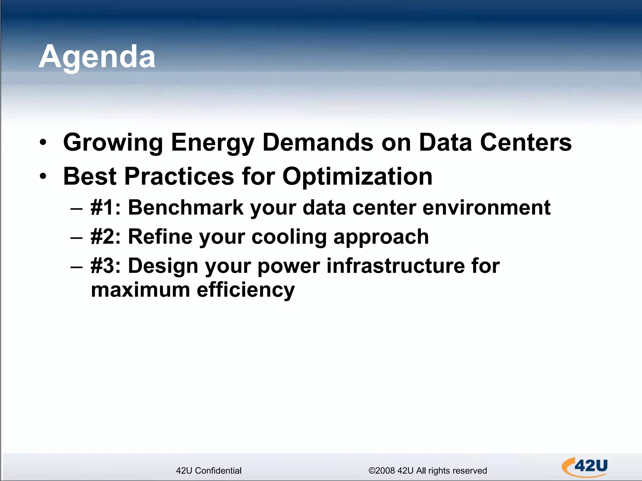 The document outlines three best practices for optimizing IT infrastructure in data centers: benchmarking the data center environment, refining cooling approaches, and designing power infrastructure for maximum efficiency. It highlights the growing energy demands of data centers and provides insights into energy consumption trends and strategies for improvement. The recommendations aim to reduce energy waste and enhance the overall productivity of data centers.