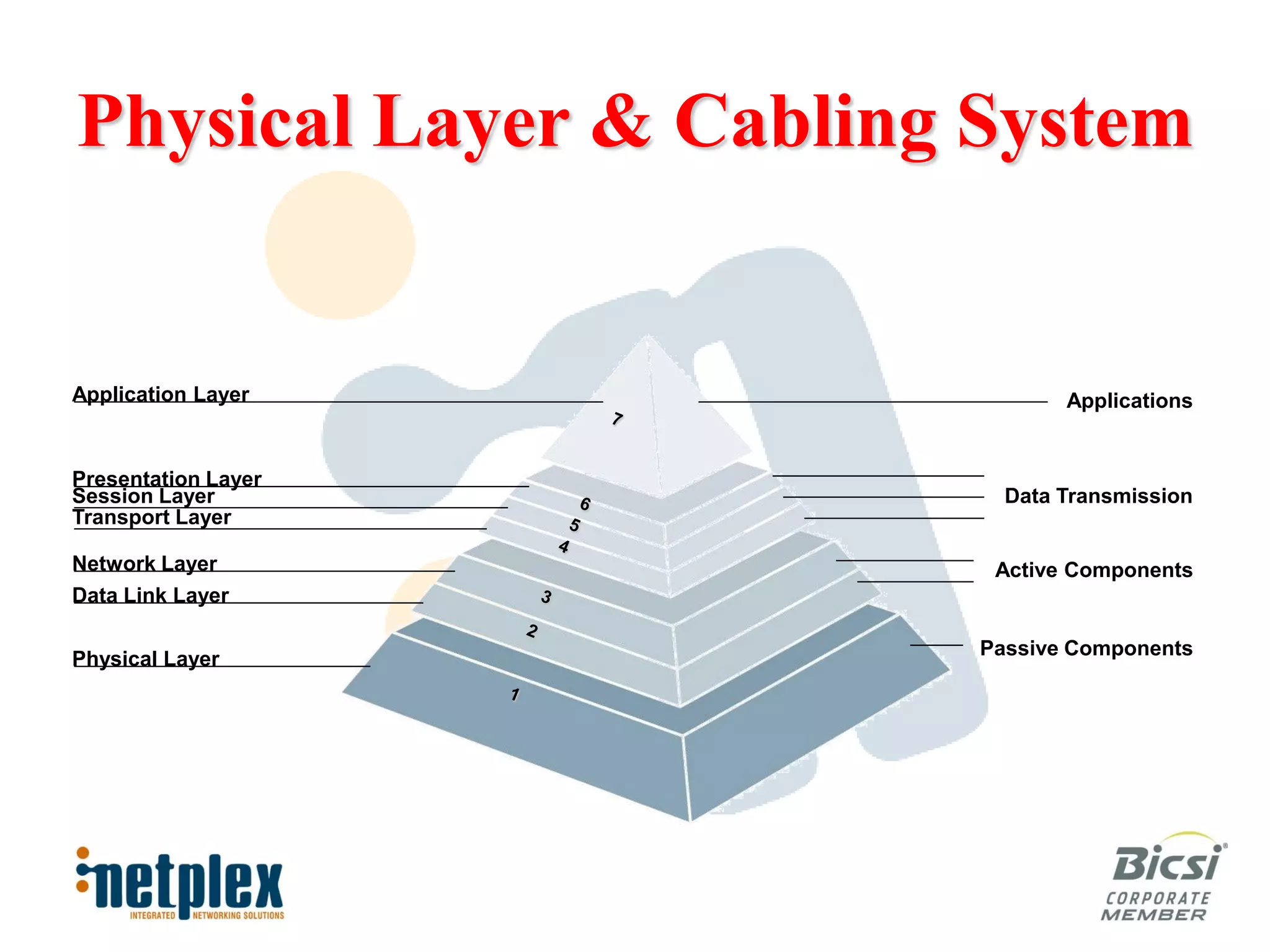 The document discusses the physical layer infrastructure requirements for high performance data centers. It emphasizes that cabling systems should meet industry standards, support current and future technologies, provide long-term warranties, and achieve high availability. Specific recommendations include using at minimum Category 6A shielded copper cabling, only OM3/OM4 and OS1 fiber optic cabling, and obtaining lifetime application performance warranties from component manufacturers.