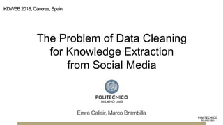 The document discusses the challenges of data cleaning for knowledge extraction from social media, emphasizing that keyword or hashtag-based filtering is often insufficient. It presents various models using supervised learning techniques applied to annotated tweet datasets to improve topic relevancy detection. The study evaluates different feature extraction strategies and concludes that machine learning can enhance relevancy detection in social media data.