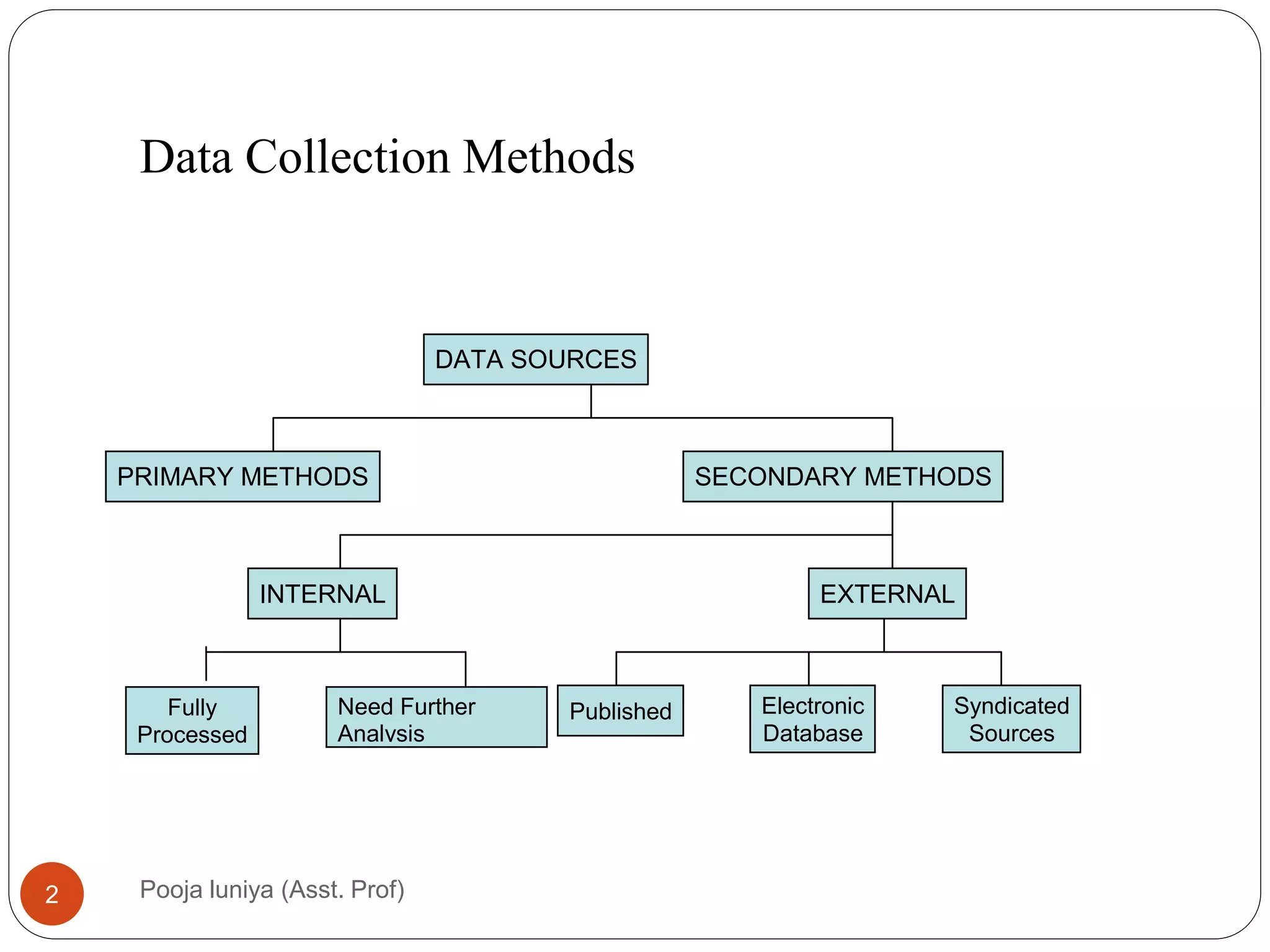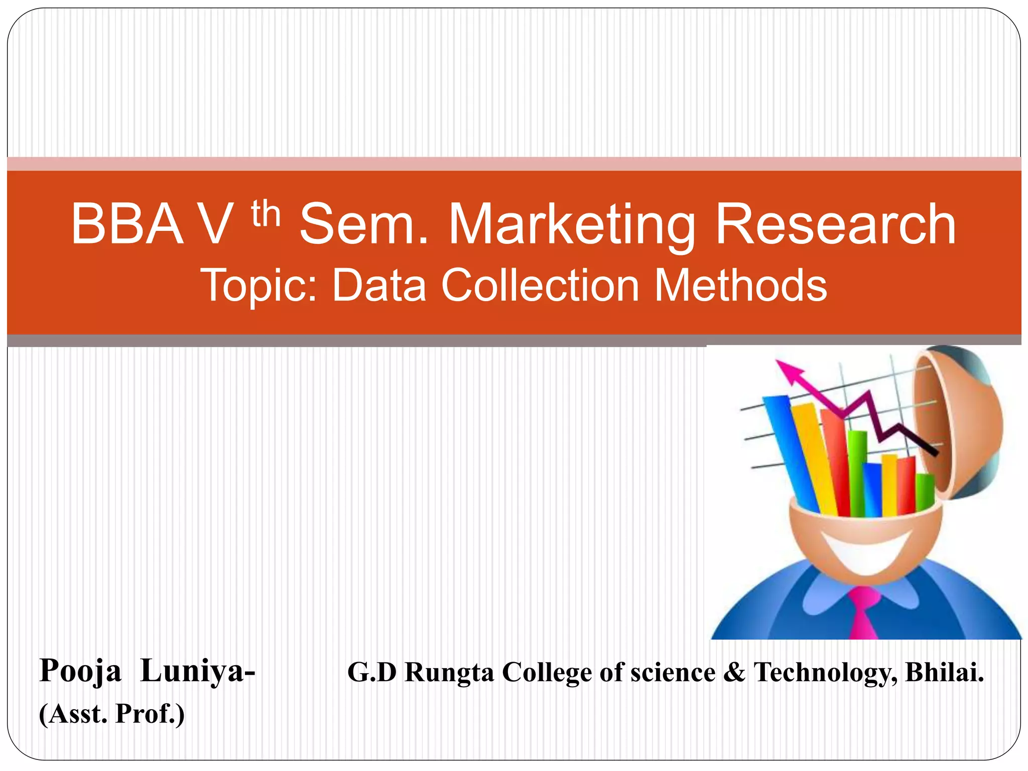 This document discusses data collection methods, including secondary and primary data. Secondary data refers to data that has already been collected for other purposes, and can help identify problems, define research questions, and interpret primary data. However, secondary data may not be directly relevant or accurate for the current research problem. Primary data is originally collected by the researcher specifically for the research problem and can be qualitative or quantitative. Common primary data collection methods include surveys, interviews, and observations. Surveys are a widely used quantitative method that involve distributing questionnaires via mail, email, telephone or online. They have advantages of being low-cost and allowing large samples, but suffer from low response rates.