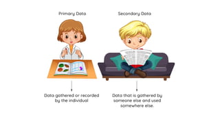 The document discusses data collection as a critical component of research methodology, including its importance in gathering observable and measurable data to address research questions and achieve objectives. It outlines various data collection methods, including primary (qualitative and quantitative) and secondary data, and details specific techniques such as interviews, questionnaires, and observational methods. Additionally, the document addresses the advantages and disadvantages of each method, along with best practices for effective data collection.