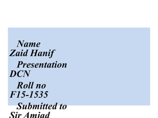 This document is a presentation on multiplexing techniques. It defines multiplexing as a technique that allows sending multiple signals over a single data link by sharing the medium. It describes three main multiplexing types: frequency division multiplexing (FDM) which modulates each input signal to a different carrier frequency; wavelength division multiplexing (WDM) which combines multiple wavelengths of an optical signal; and time division multiplexing (TDM) which assigns each transmitter a time slot. TDM is further broken down into synchronous and asynchronous types. Diagrams are included to illustrate each technique.