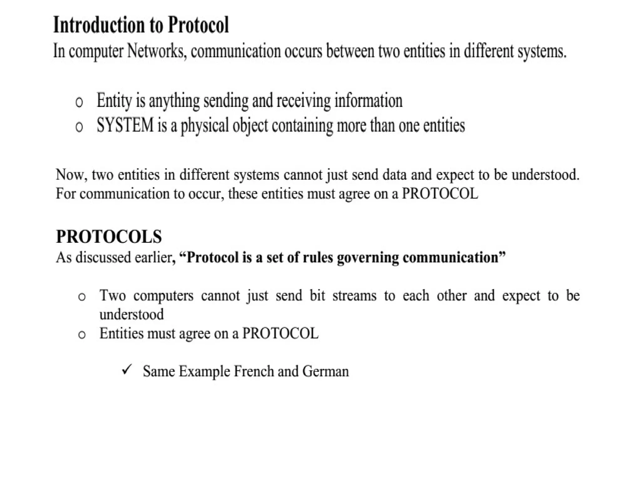 entities must agree on a protocol. Therefore, a
