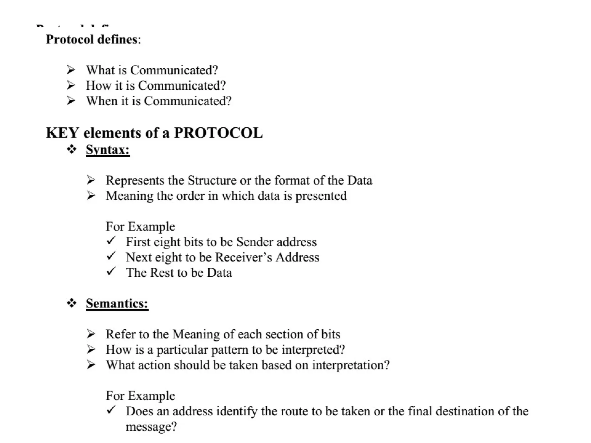 There are three elements of a protocol: