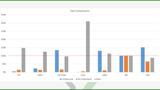 The document discusses the importance of data compression for smaller app sizes and reduced network traffic. It explains that compression can save money on data costs and improve performance by reducing download sizes and loading times. While platforms aim for "good enough" compression, there are many techniques that can achieve much better compression ratios than defaults like DEFLATE. These include lossless compression algorithms like Brotli and LZ4 as well as lossy compression of textures, 3D models, and sounds. The document provides examples of how to compress different data types and considers tradeoffs of compression speed versus ratio.