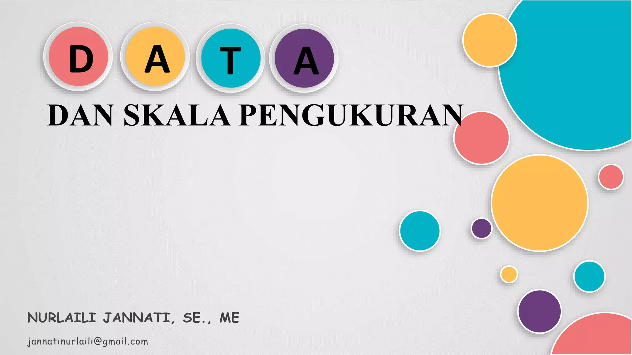 Dokumen ini membahas tentang data dan skala pengukuran. Terdiri dari 5 bagian yang membahas tentang pengertian data, jenis data berdasarkan waktu dan sumber data, serta skala pengukuran seperti nominal, ordinal, interval dan rasio.