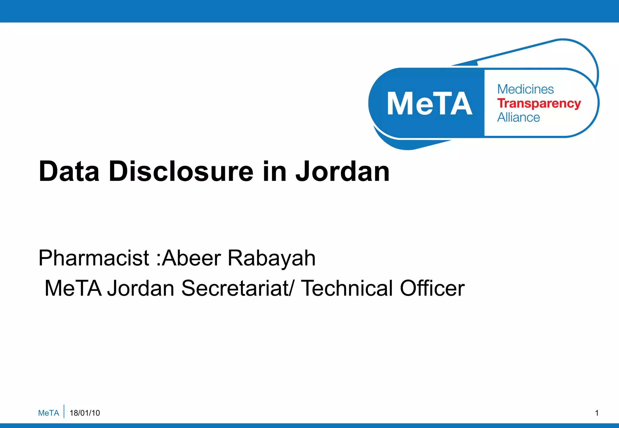 The document focuses on the overview of data disclosure practices in Jordan, detailing the collection of data related to policies, regulations, and the availability of key disclosure data. It highlights challenges faced, such as limited stakeholder engagement and difficulties in accessing certain data, while also noting the lessons learned from meetings that promoted data sharing and understanding of disclosure issues. Additionally, there is a call for support to foster a systematic approach to data disclosure, especially within the private sector.