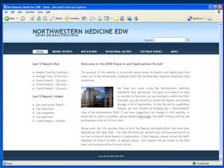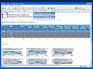 The document discusses the importance of data warehousing and analytics in clinical quality improvement and decision support, showcasing case studies and lessons learned from institutions like Northwestern University. Key points include the cultural commitment required for effective data utilization and the evolution of electronic data practices in healthcare. The presentation underscores the value of structured data management and the potential for improved clinical outcomes through timely information access.