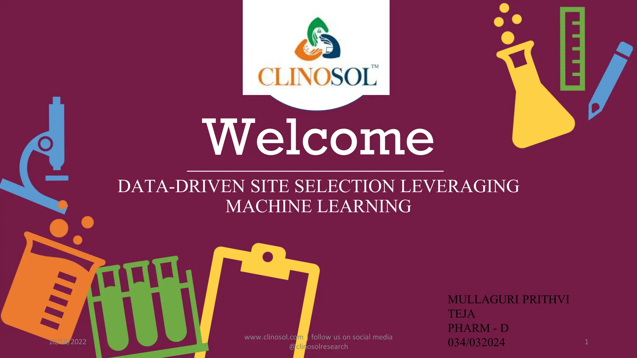 The document discusses the integration of machine learning in data-driven site selection for clinical trials, emphasizing its role in identifying patterns and making predictions based on various factors. It outlines considerations such as staff qualifications, facilities, competition, and regulatory compliance, alongside the steps and challenges involved in implementing machine learning. Additionally, it highlights real-world applications in healthcare, where machine learning enhances medical diagnostics and patient care by analyzing vast datasets.