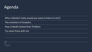 The document discusses real-time analytics using Apache Pinot and how companies like LinkedIn, Uber Eats, and Stripe utilize it to create dashboards for millions of users. It highlights the evolution of analytics, the need for data freshness, and the architectural advantages of Pinot, including its indexing techniques and scalability. Additionally, it touches on the future trends in big data and how organizations can leverage real-time analytics for enhanced business intelligence.