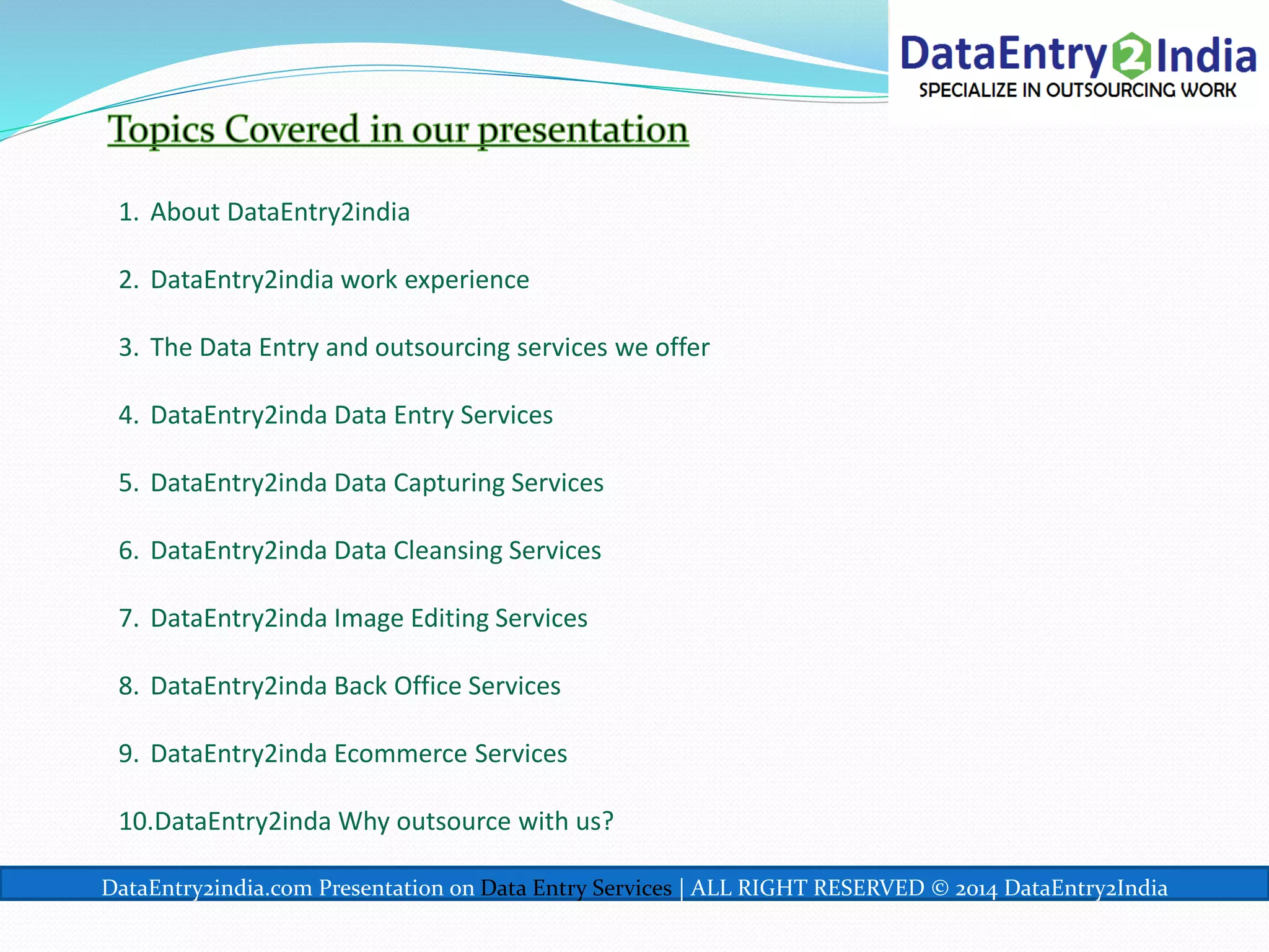 Dataentry2india is a leading provider of data entry and outsourcing services, leveraging over 7 years of experience and a skilled team to deliver a range of services including data capturing, cleansing, and OCR solutions. The company emphasizes professionalism, client satisfaction, and cost-effective operations while ensuring privacy and accuracy of information. They offer trial jobs for potential clients to showcase their capabilities and foster business relationships.
