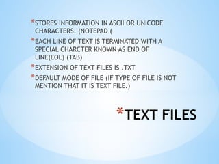 *STORES INFORMATIONIN ASCII OR UNICODE