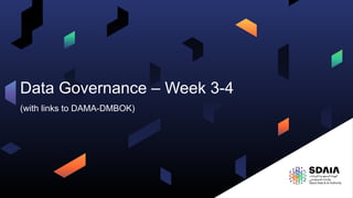 The document outlines the principles and structures of data governance, emphasizing the roles and responsibilities of various stakeholders including data owners, stewards, and custodians. It discusses the implementation of data governance frameworks, security measures, and compliance with regulations such as GDPR and HIPAA. The document also highlights the importance of establishing a data governance council and the need for effective data management practices across organizations.