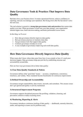 Governance introduces continuous tracking of data quality — dashboards, anomaly detection,