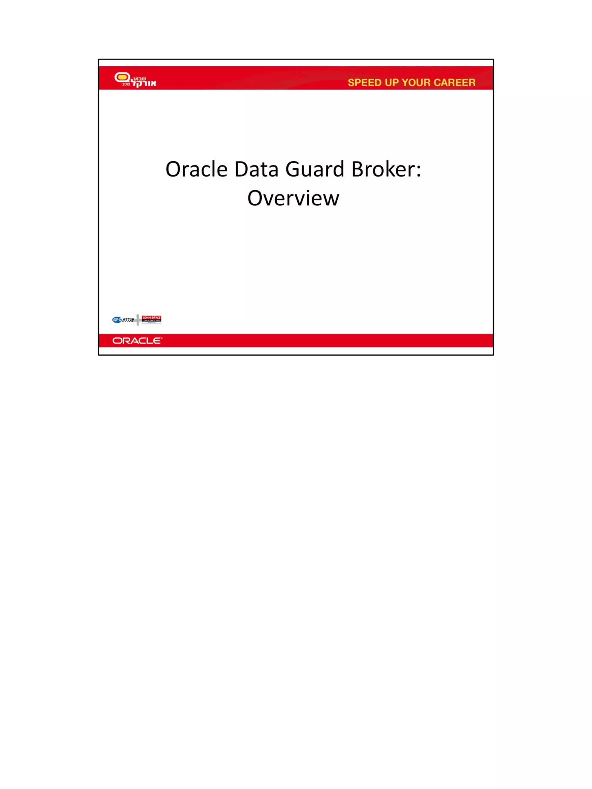 Oracle Data Guard is a critical component of Oracle's database high availability solution, enabling businesses to ensure continuity by minimizing downtime through automated management of primary and standby databases. It supports various types of standby databases (physical, logical, and snapshot) and provides features such as role management, data protection modes, and operational requirements to safeguard against data loss and corruption. Data Guard facilitates switchover and failover operations to maintain service continuity in the event of failures or routine maintenance.