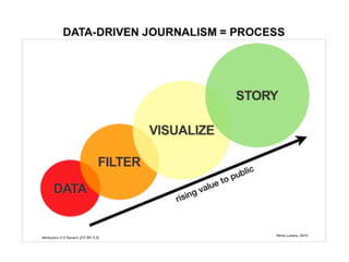 The document introduces data journalism, explaining its significance and the essential role of data journalists in transforming raw data into compelling narratives. It highlights the evolution of data journalism from computer-assisted reporting, emphasizes the necessity for journalists to be data-savvy, and mentions several examples of successful data journalism projects. The upcoming semester will focus on teaching the processes and tools necessary for effective data journalism.