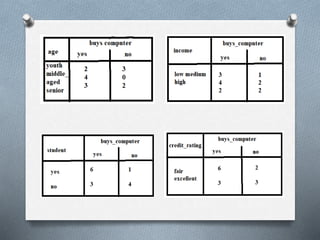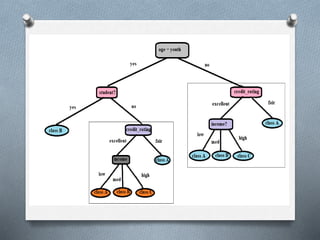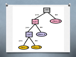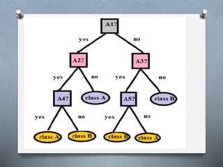 1. Decision tree induction is used for data mining but can result in overfitting due to noise in the training data. Tree pruning methods address this by removing the least reliable branches using statistical measures.