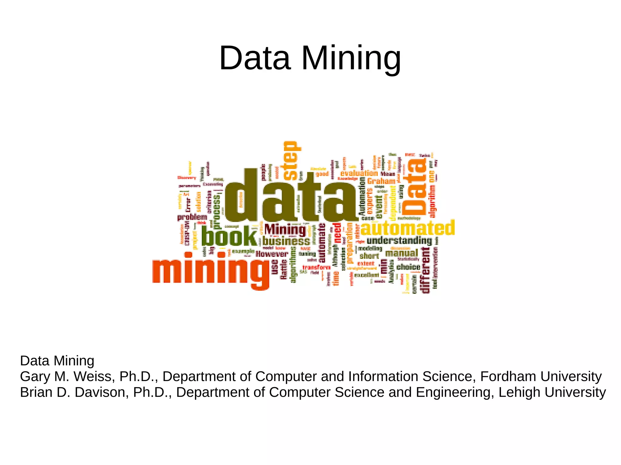 This document provides an overview of data mining. It defines data mining as a process that takes data as input and outputs knowledge. The data mining process involves preparing data, applying data mining algorithms to identify patterns, and evaluating the results. The document discusses the motivation for data mining, including the growth of data and need to analyze unstructured data. It outlines common data mining tasks like classification, regression, association rule mining, clustering, and text and link analysis. The tasks of classification and regression are described in more detail.