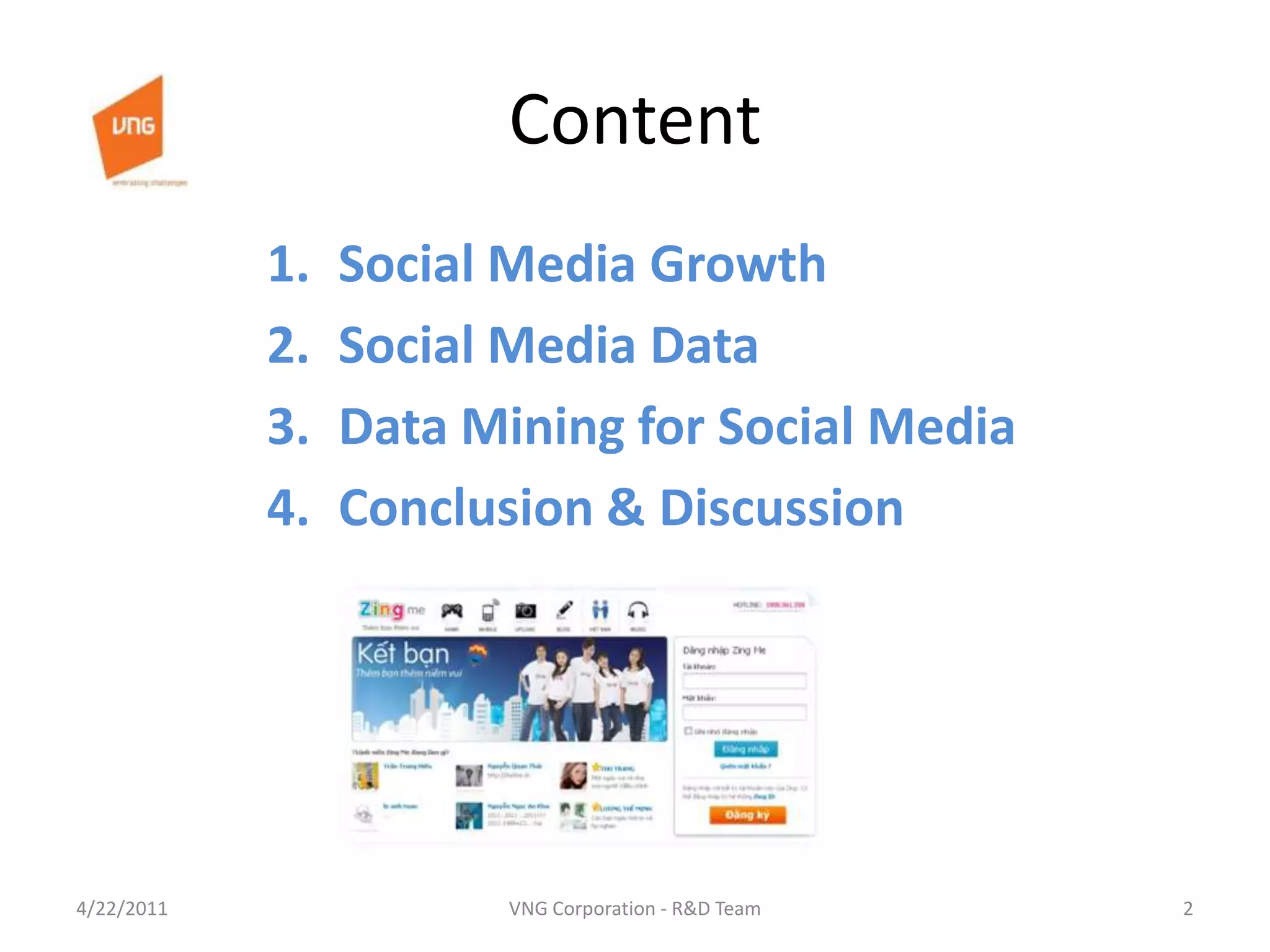 This document discusses data mining techniques for social media. It begins by reviewing the growth of popular social media sites like Facebook, YouTube, and Twitter. It then discusses how social media generates huge amounts of user data through interactions and content sharing. The document outlines opportunities to use data mining on social networks to gain insights into human behavior, marketing analytics, and more. It reviews common problems studied, like community detection, node classification, and modeling information flow. The conclusion emphasizes that social media provides a massive, open dataset for developing recommender systems and targeting marketing through predictive analysis of user interests and trends.