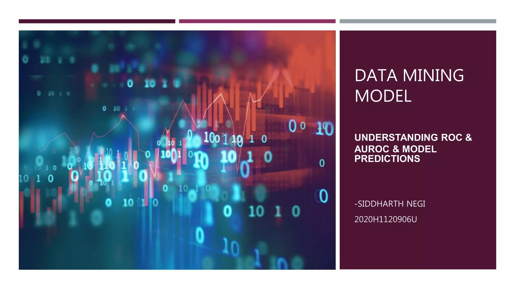 This document discusses Receiver Operating Characteristic (ROC) curves and how they are used to evaluate machine learning models and predictions. It explains that ROC curves plot the true positive rate against the false positive rate for different classification thresholds. The area under the ROC curve (AUC) indicates the model's ability to correctly classify examples, with higher values indicating better performance. The document then provides a Python example to generate ROC curves for random forest and naive Bayes classifiers trained on a synthetic dataset, finding that the naive Bayes model has the best performance with an AUC of 0.993.