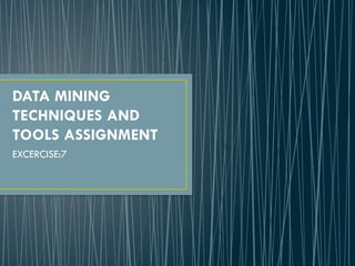DATA MINING TECHNIQUES AND TOOLSASSIGNMENT EXCERCISE:7