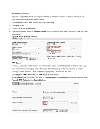 1) The document provides tips for optimizing performance on WebSphere DataPower devices by adjusting caching, enabling persistent connections, using processing rules efficiently, optimizing MQ and XSLT configurations, and leveraging synchronous and asynchronous actions appropriately.