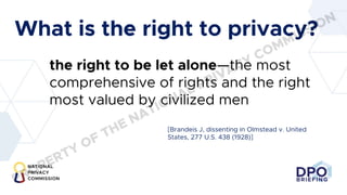 The document provides a comprehensive overview of the Data Privacy Act, emphasizing the right to privacy and outlining responsibilities for personal information controllers and processors. It details obligations, data subject rights, key terms, and penalties for violations, along with the role and functions of Data Protection Officers (DPOs). Additionally, it includes guidelines for compliance, data processing, and registration requirements for organizations.