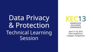 The document outlines a technical learning session on data privacy and protection held on April 17-18, 2018, focusing on the laws, principles, and compliance requirements associated with data privacy in the Philippines. It covers key topics such as personal and sensitive data definitions, the importance of consent, rights of data subjects, and conducting privacy impact assessments. Emphasizing the significance of a structured privacy management program, it provides guidelines for organizations on mitigating risks associated with data processing and the necessary technical provisions for protecting personal data.