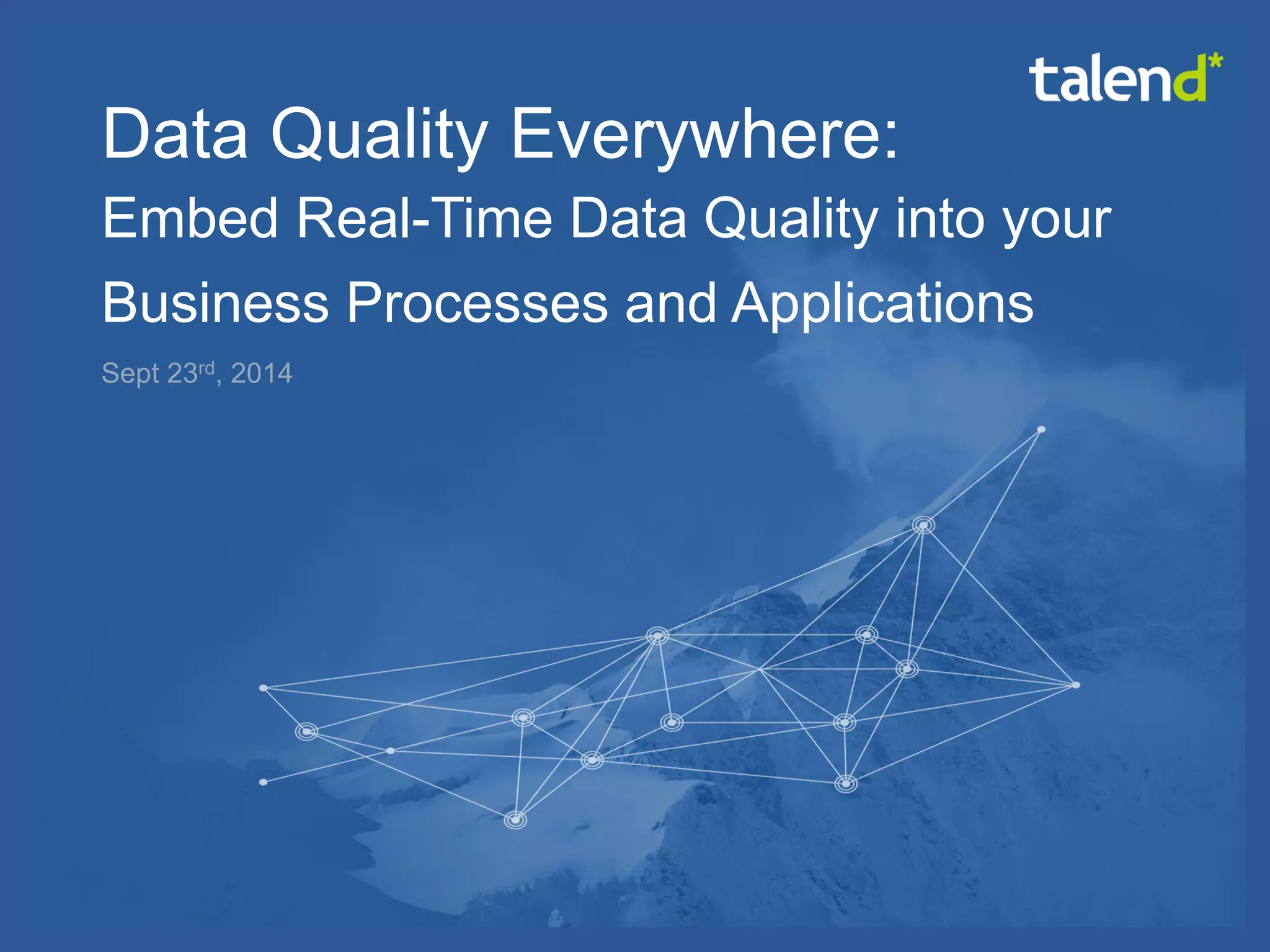 The document outlines Talend's data quality solutions and their integration into business processes, emphasizing the importance of real-time data quality for improved operational efficiency and customer experience. Talend offers a unified platform that supports data standardization, monitoring, and cleansing, enhancing data accuracy across various applications. Key benefits include reduced product introduction costs, better customer engagement, and compliance through embedded data quality controls.