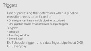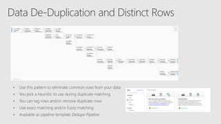Azure Data Factory can be used to build modern data warehouse patterns with Azure SQL Data Warehouse. It allows extracting and transforming relational data from databases and loading it into Azure SQL Data Warehouse tables optimized for analytics. Data flows in Azure Data Factory can also clean and join disparate data from Azure Storage, Data Lake Store, and other data sources for loading into the data warehouse. This provides simple and productive ETL capabilities in the cloud at any scale.