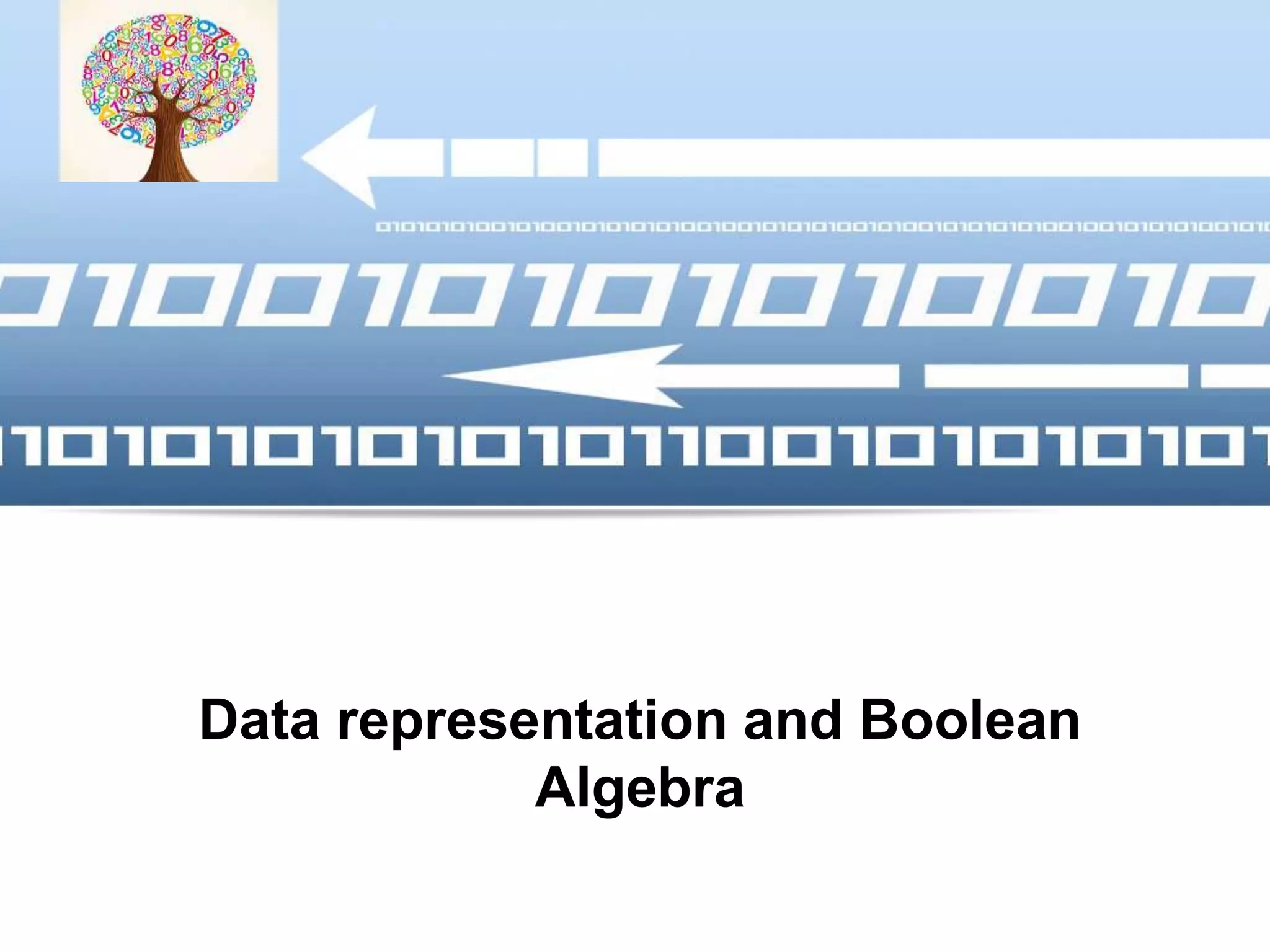The document provides information on different numeric data representation systems used in computers, including binary, octal, hexadecimal, and decimal number systems. It discusses topics such as place value, conversion between number systems, signed and unsigned numbers, and arithmetic operations for signed magnitudes, 1's complement, and 2's complement representations. The key details covered in the document are data representation, numeric data types, positional versus non-positional number systems, binary, octal, hexadecimal, and decimal number bases, integer and real number representation, and number conversion methods between bases.