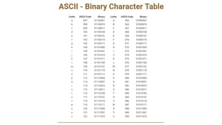 1. The document discusses different number systems like binary, octal, decimal, and hexadecimal that are used to represent numbers in a computer.