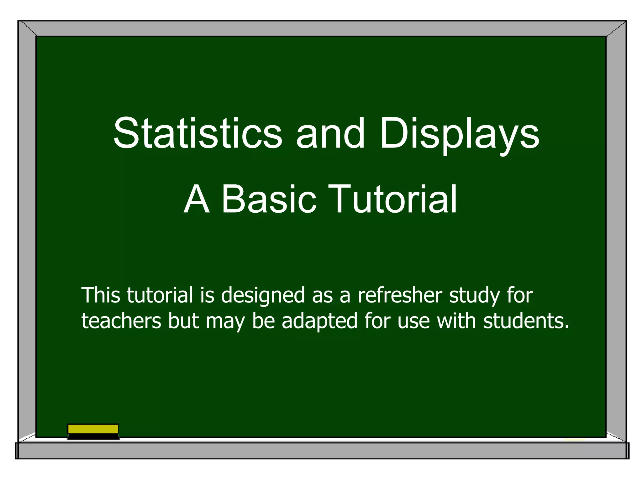 This document provides a tutorial on statistics and data displays. It includes definitions and examples of key statistical concepts like measures of central tendency, measures of spread, and types of data and variables. It also describes commonly used data displays like line plots, bar graphs, circle graphs, and stem-and-leaf plots. For each display, it explains what they consist of, when they work best, and includes examples. Questions to consider when analyzing each display are also provided. The tutorial is intended to refresh teachers' knowledge but can also be used by students.