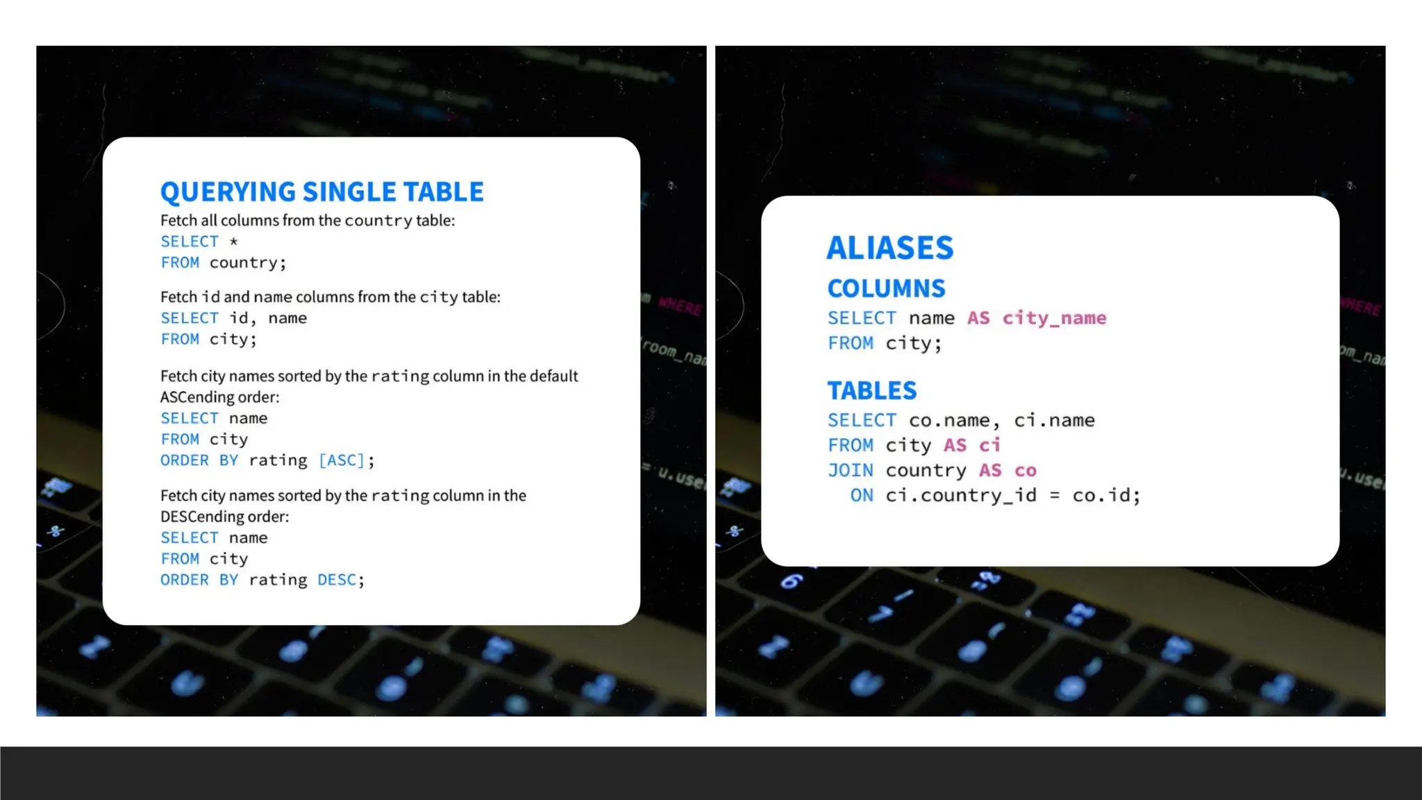 among those data. Each table has multiple columns, and each column has a unique name. Tables