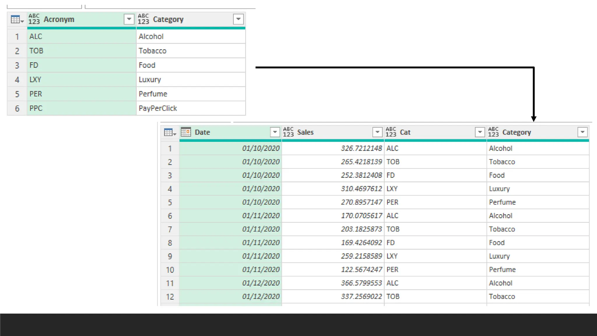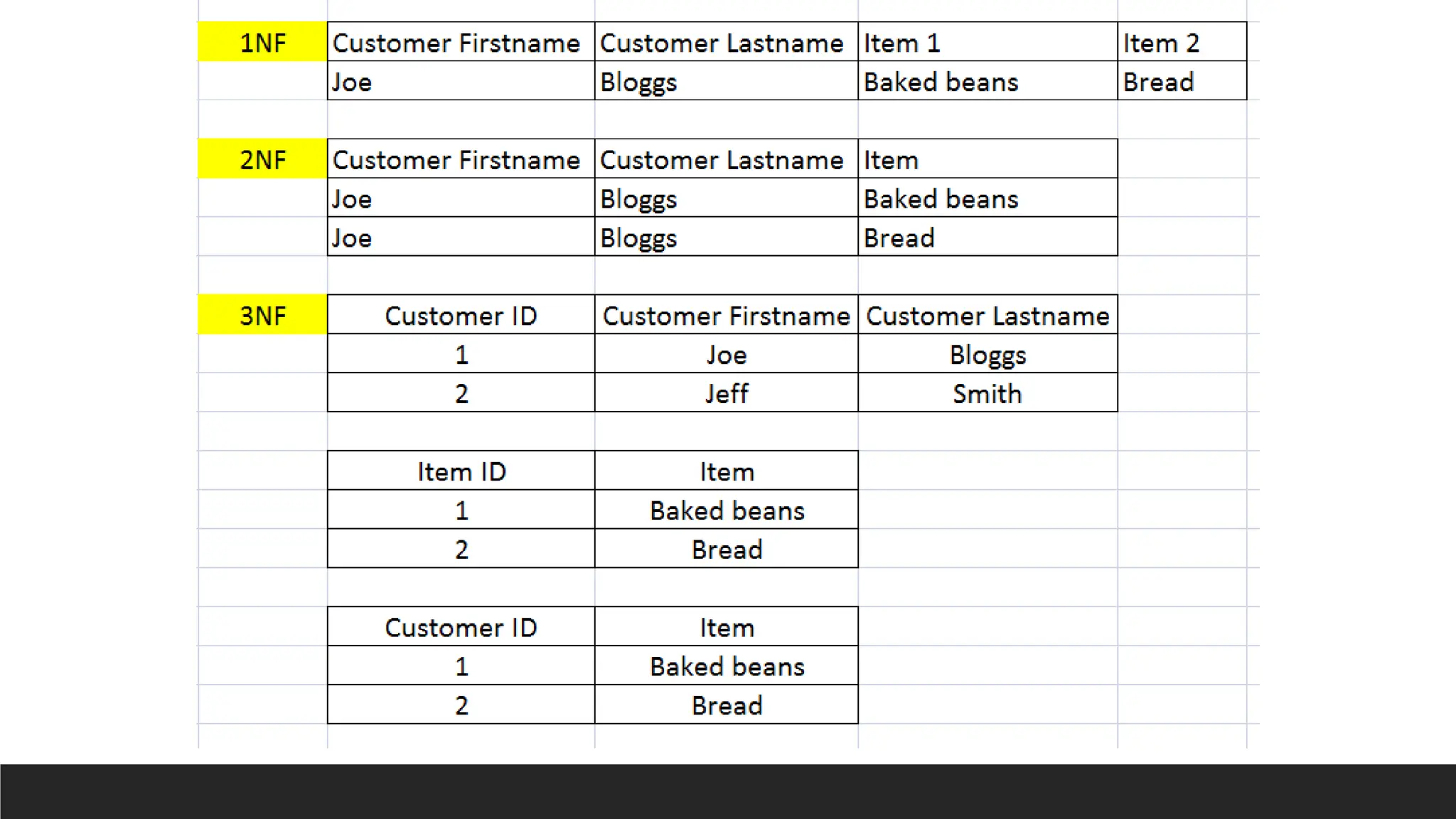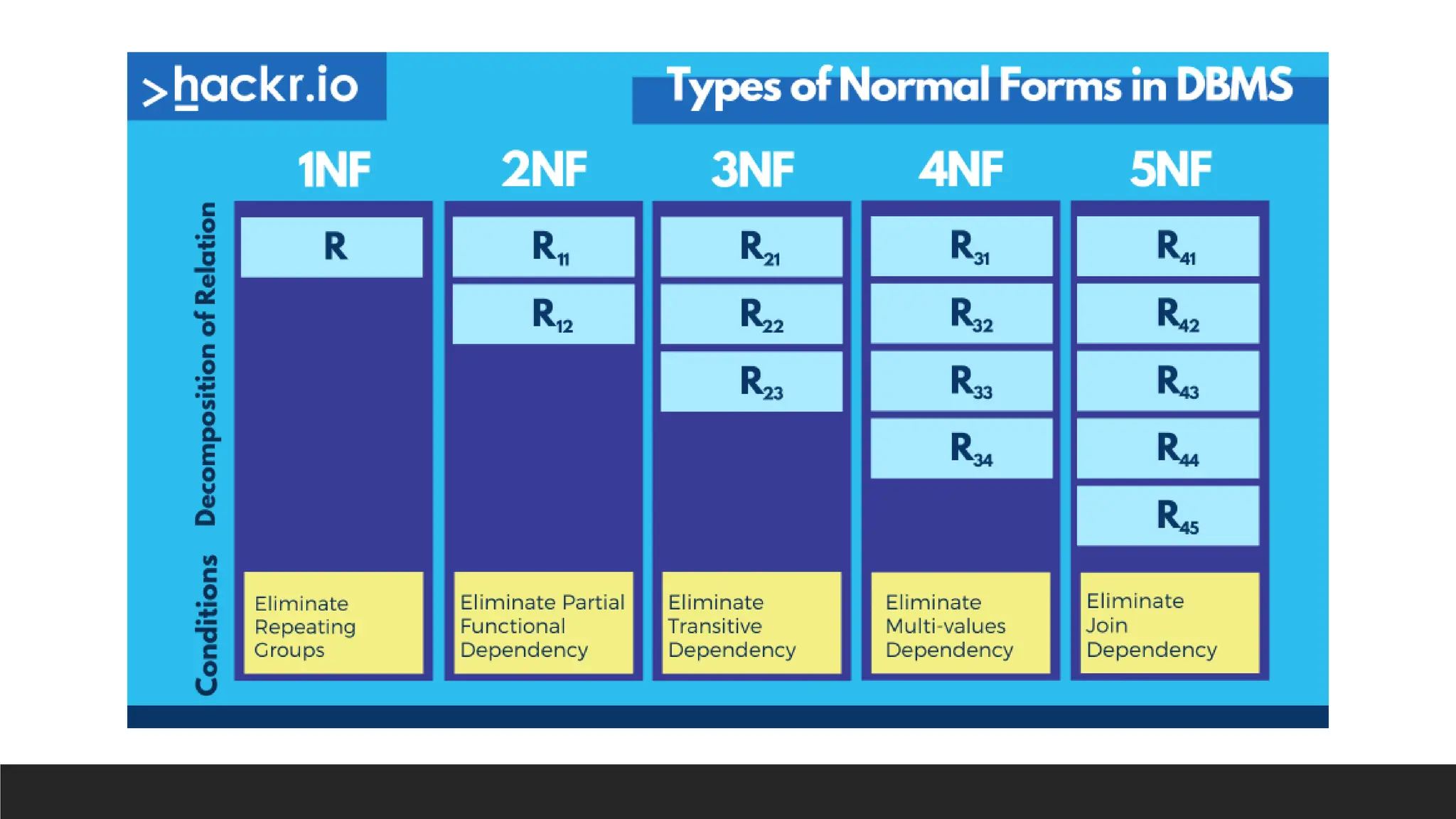 intersecting rows and columns. The relations are related to each other through the sharing of common