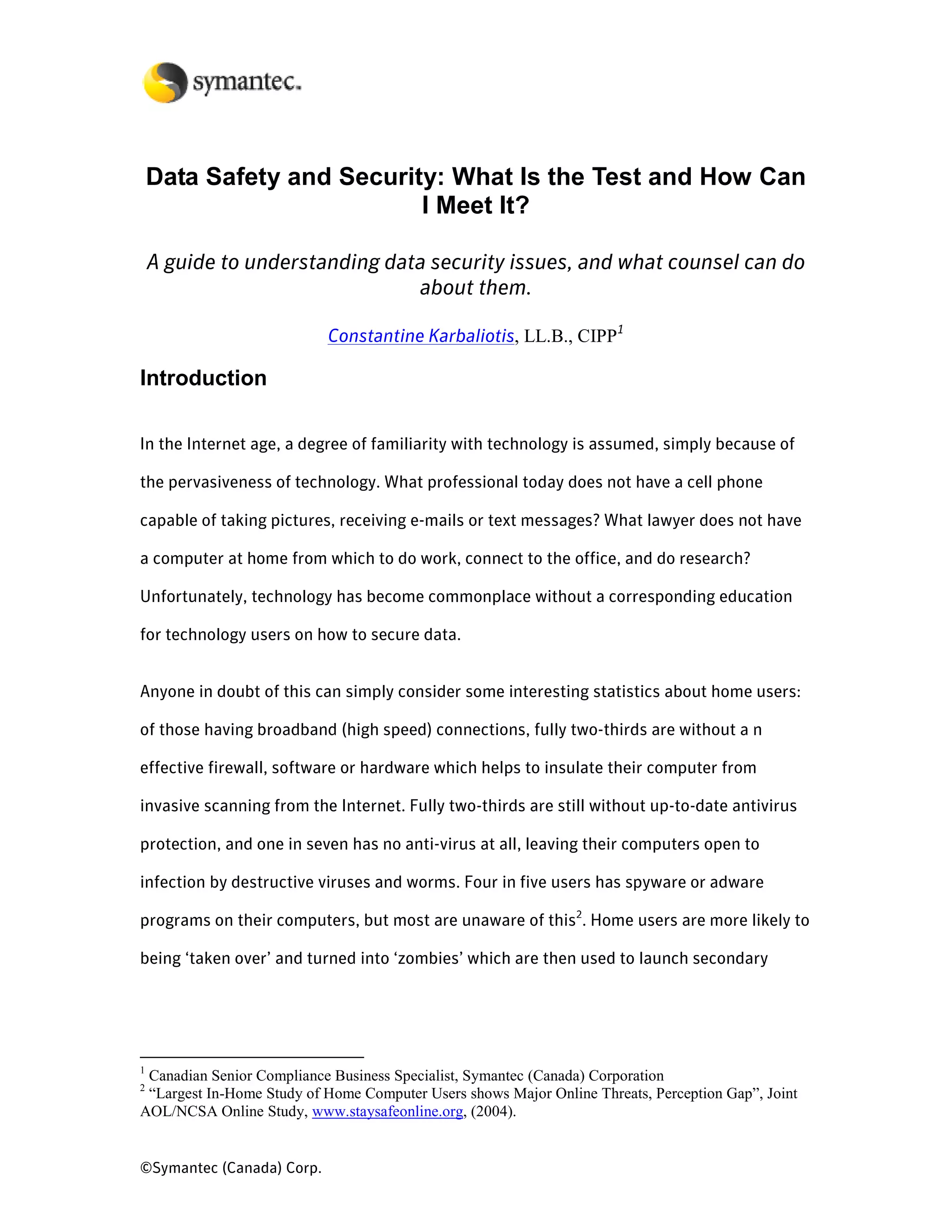 This document provides guidance for lawyers on data security issues and how to help clients meet data security standards. It discusses how lack of security knowledge is common among both personal and enterprise computer users. Various threats like viruses, worms, Trojans, bots, and spyware/adware are described. Examples of data security risks include loss of portable devices containing personal information, insecure home networks that employees access for work, and insecure disposal of physical documents and digital media. The document advises evaluating security controls and investing in tools to detect breaches and audit compliance.