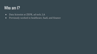 The document provides an overview of data science from the perspective of a practitioner at ZEFR, an ad tech company. It discusses the history and growth of data science, common pitfalls, and the minimum skills required, including experience with SQL, NoSQL, machine learning frameworks, cloud computing, and software engineering best practices. It emphasizes the importance of understanding problems, communicating findings, and automating/scaling solutions given the petabyte-scale of data at ZEFR.