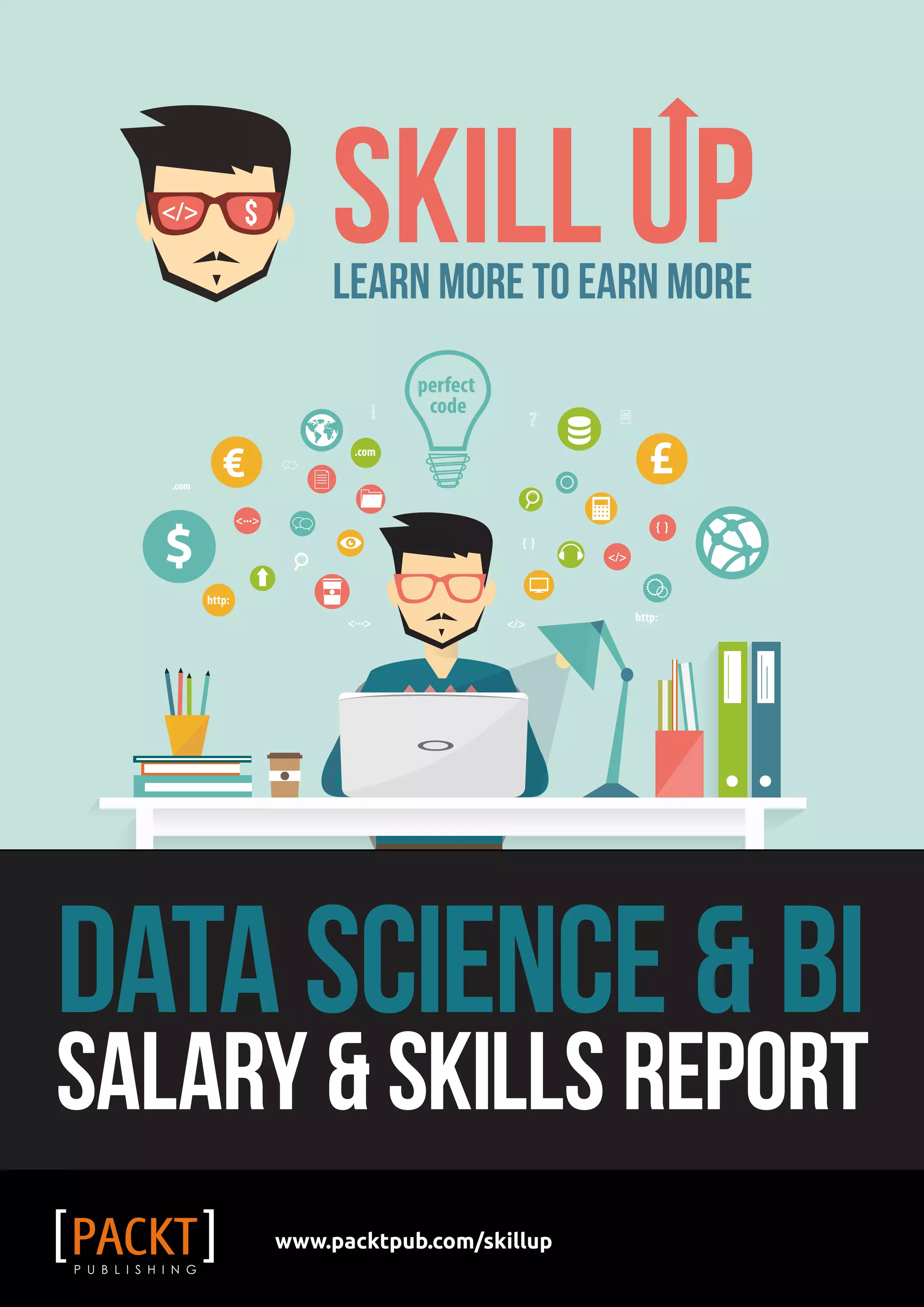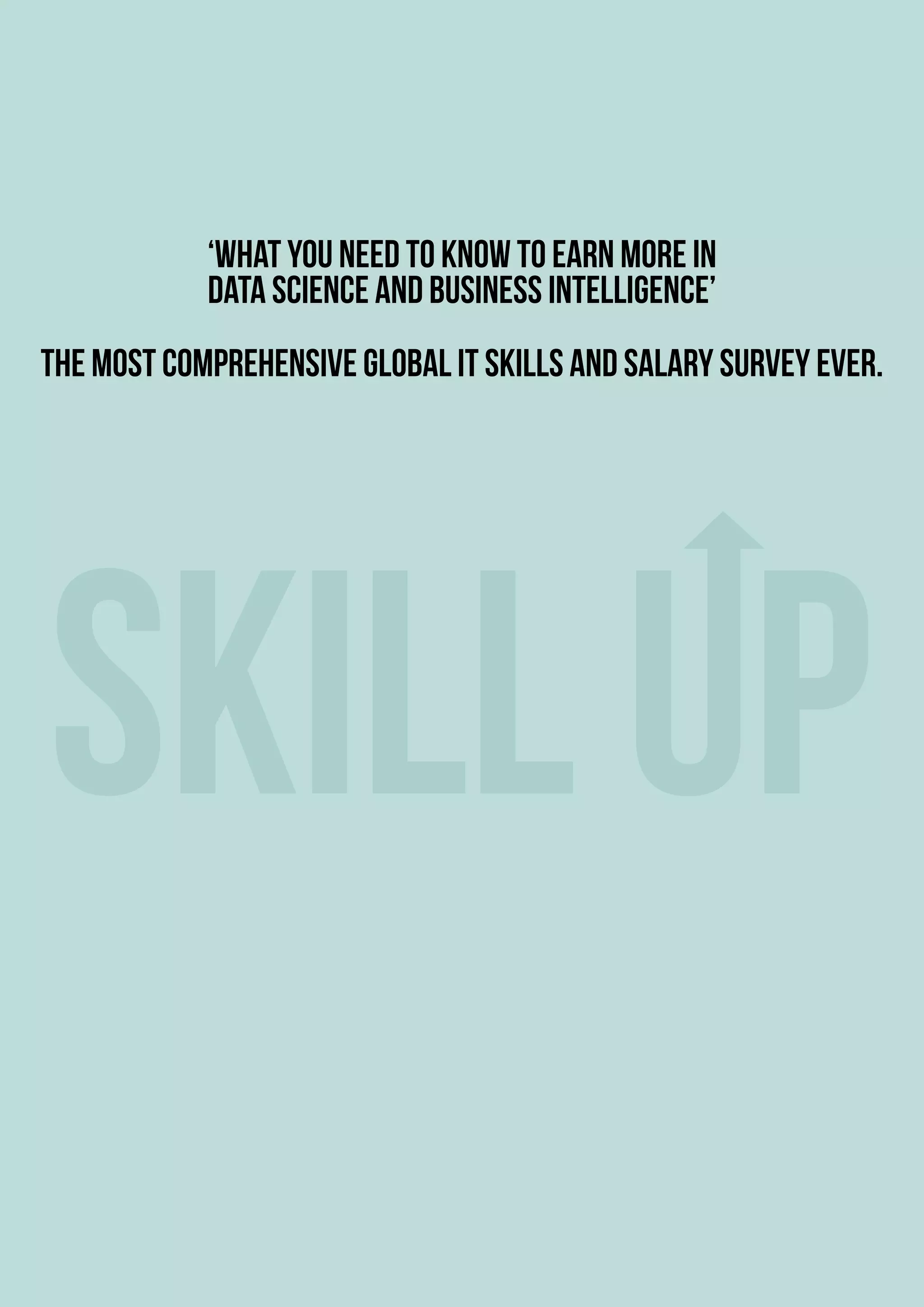 The document is a report on data science and business intelligence skills and salaries based on a large survey. Some of the key findings from the report include: