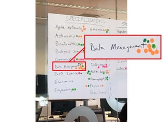 The document discusses various aspects of data science, particularly focusing on human-data interaction, data curation, and the complexity of modern data ecosystems. It highlights the challenges faced by researchers in handling large amounts of data, emphasizing how data processing and curation can become bottlenecks in scientific workflows. Several projects, including SQLShare, Myria, and Viziometrics, are mentioned as efforts to optimize data usage and improve access to scientific information.