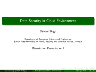 The document discusses data security in cloud environments. It covers cloud computing models including infrastructure as a service, platform as a service and software as a service. It also discusses common attacks on clouds like denial of service and phishing attacks. The document outlines cloud security controls that are deterrent, preventive, detective and corrective. It discusses security models for data integrity, privacy and confidentiality in clouds.