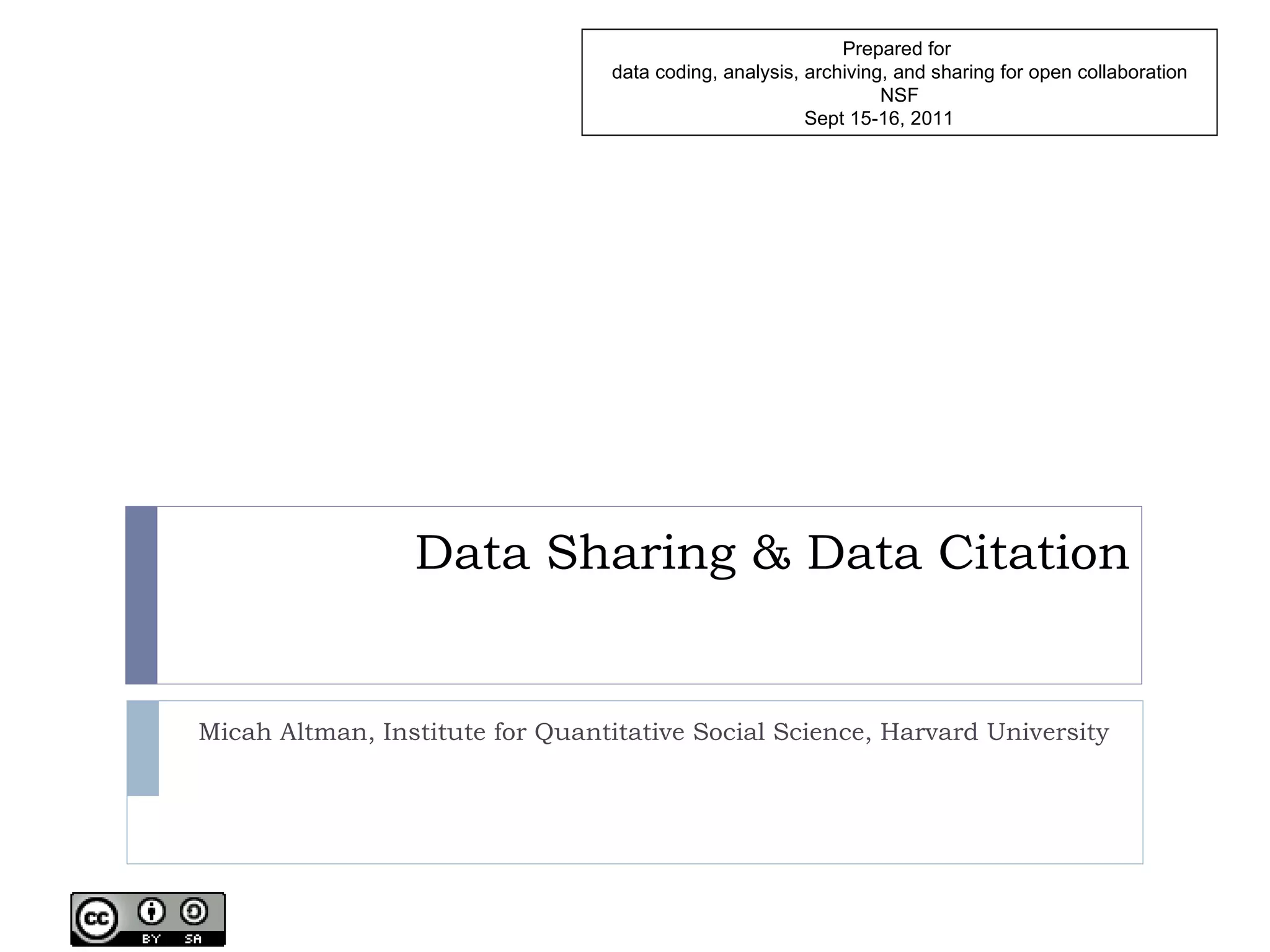 The document discusses the importance of data sharing and citation in scientific research, highlighting that access to data is foundational for scientific progress and collaboration. It outlines motivations for data sharing, such as enhancing publication impact, supporting replication, and democratizing science, while also addressing challenges like confidentiality and varying practices across communities. The document emphasizes the need for infrastructure, policies, and collaboration to facilitate effective data sharing and ensure long-term access to research data.