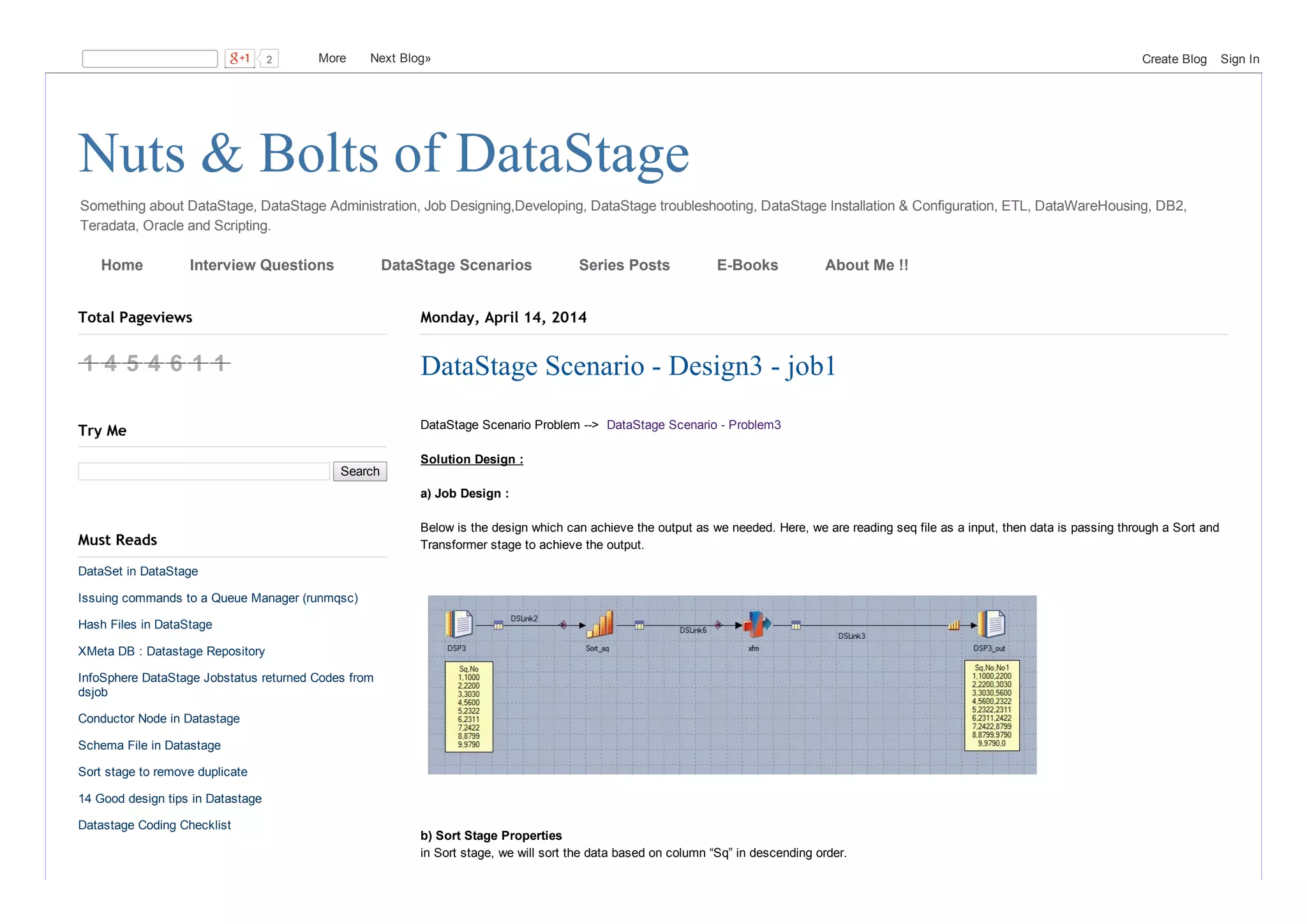 This document describes a DataStage job design to solve a scenario problem. The design includes: