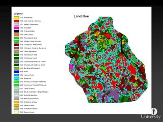 The document describes various models and operations used in GIS, including vector, raster, object models and common vector analysis operations such as selection, dissolve, append, clip, intersect, and union. It provides examples of how each operation works and the input and output layers involved. Key points covered include how topology is maintained in vector models, attributes can be linked as objects, and how selection and overlay operations can be used to analyze spatial relationships between layers.