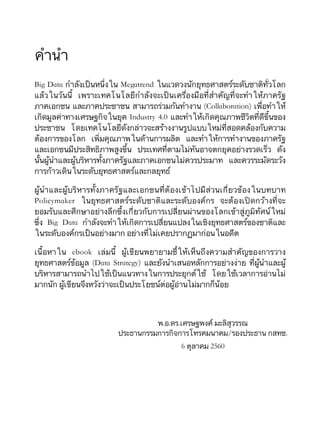เนื้อหาใน ebook เล่มนี้ ผู้เขียนพยายามชี้ให้เห็นถึงความสำคัญของการวางยุทธศาสตร์ข้อมูล (Data Strategy) และยังนำเสนอหลักการอย่างง่าย ที่ผู้นำและผู้บริหารสามารถนำไปใช้เป็นแนวทางในการประยุกต์ใช้ โดยใช้เวลาการอ่านไม่มากนัก ผู้เขียนจึงหวังว่าจะเป็นประโยชน์ต่อผู้อ่านไม่มากก็น้อย
