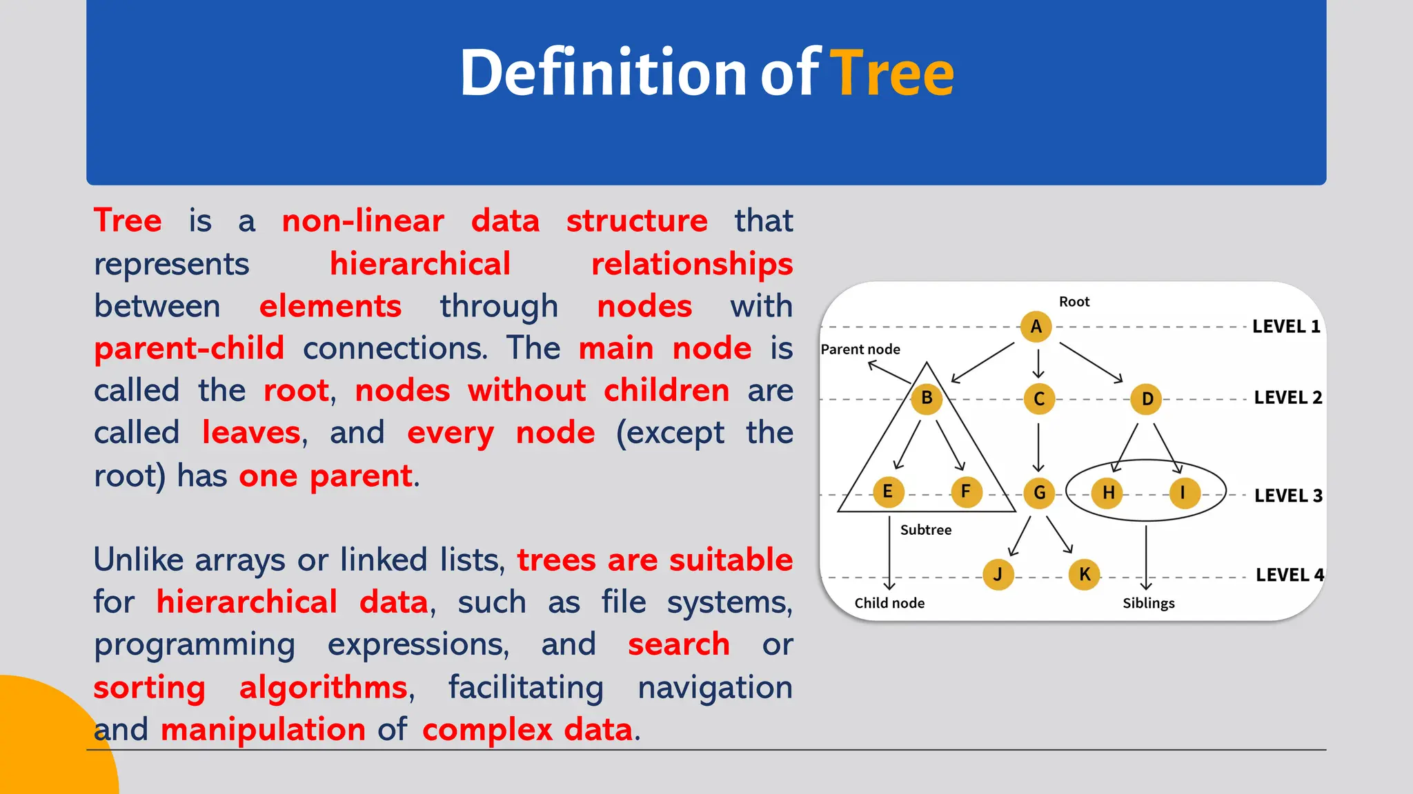 The Tree slide the Data Structures course include: