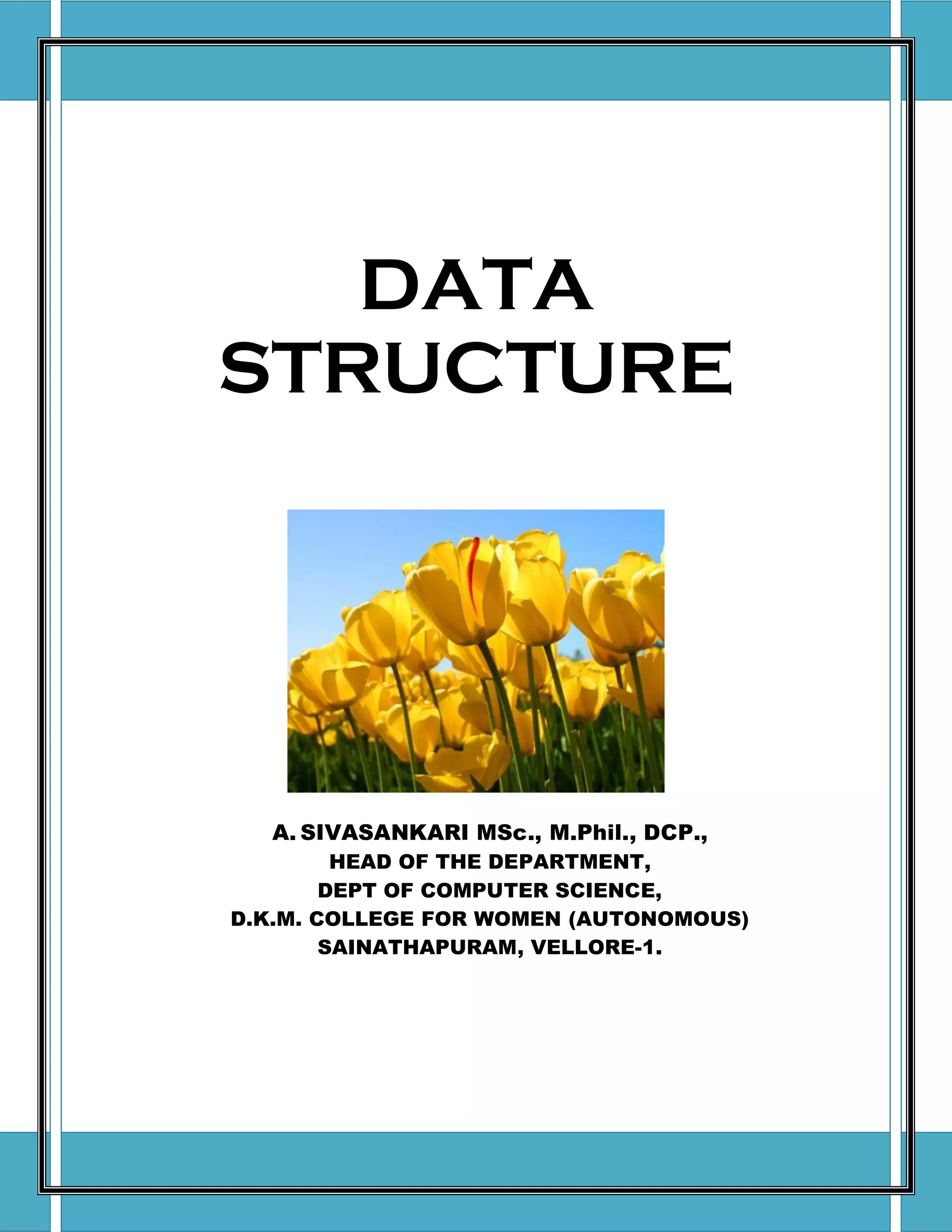 The document is a comprehensive guide on data structures, detailing their definitions, classifications, and operations. It categorizes data structures into linear and non-linear, homogeneous and non-homogeneous, static and dynamic, and primitive and non-primitive types. Additionally, it covers operations associated with data structures, such as creation, destruction, selection, and updating, along with specific considerations for arrays, stacks, and queues.