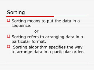 Sorting meansto put the data in a