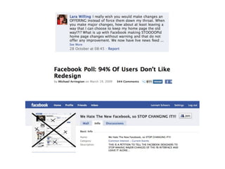 This document discusses three key ingredients for making good product decisions: data, taste, and confidence. It provides guidance on properly collecting and interpreting sufficient data, having good objective design taste that builds trust, and having confidence in decisions while being willing to admit mistakes. User behavior should be measured along with feedback. Both data and taste are important, but taste can attract users before they discover other strengths. Confidence in the product and decisions is important, but changes may still need time to settle and failures should be admitted.
