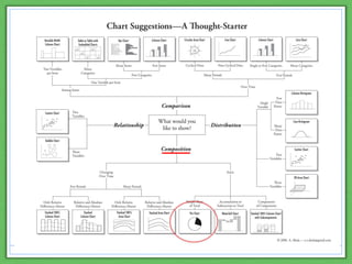 2) Design tips include representing data accurately, using simple styles, employing color cautiously, choosing clear fonts, and using annotations to tell a story.